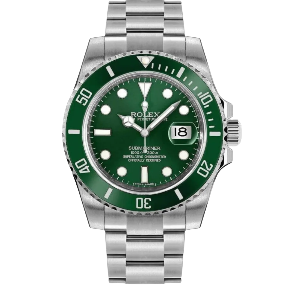 Mirror-grade clone with green sunburst dial, ceramic bezel, 904L steel, and automatic movement. For collectors who want the real feel without the price.